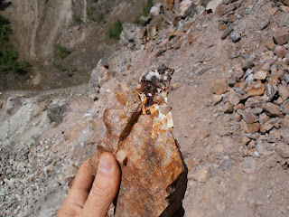 Tuček uvnitř žíly chránil krystaly topazu a apatitu před zničením a korozí. Na údery mého kladiva už ale Tuček nestačil a vydal: