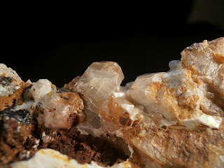 Předkládám k nahlédnutí nejpovedenější kousky z pěkné křemenné žílky vyplněné krystaly topazu (až 19 mm). Žíla obsahuje dále kasiterit a apatit.